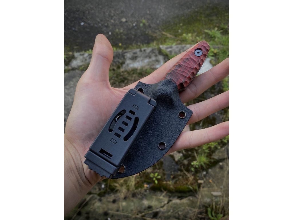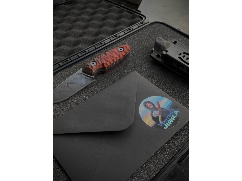 Součástí je ručně vyrobené kydexové pouzdro s teklokem pro bezpečné a pohodlné nošení.